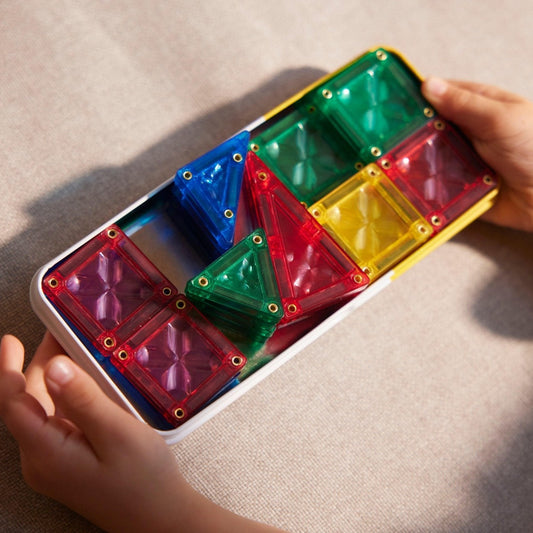 Cleverclixx Mini Tiles Pack Intense – 28-Piece Magnetic Travel Set in Metal Tin