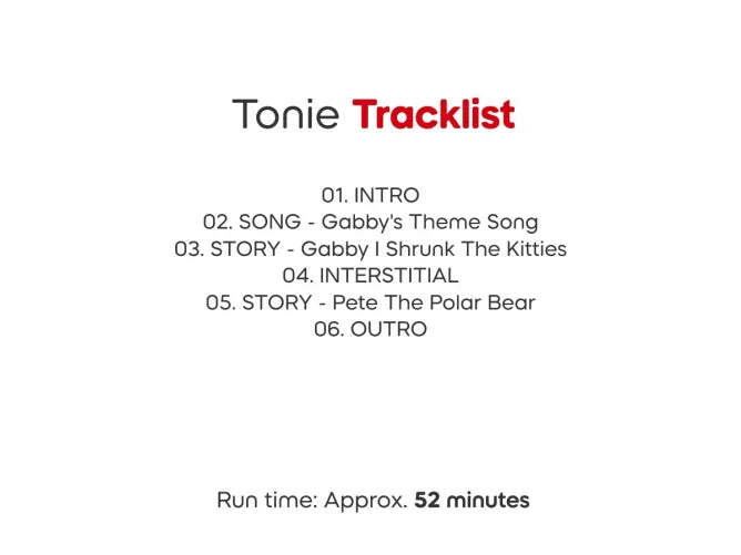 This Tonie includes two audio adventures, music from the show, and brand-new recordings from Gabby herself (voiced by Laila Lockhart). Just pop MerCat on the Toniebox and dive into a bubbly, bright new adventure!